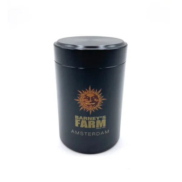 Mit der Barneys Farm Metalldose in Schwarz holst du dir ein hochwertiges und edles Aufbewahrungsaccessoire direkt aus Amsterdam. Ob Cannabisblüten, Kräuter, kleine Tools oder andere wertvolle Inhalte – in dieser ca. 100 ml fassenden Dose ist alles sicher und stilvoll verwahrt. Robustes Metall trifft auf das ikonische Barneys Farm Design mit goldenem Logo und gravierter „Amsterdam“-Aufschrift.