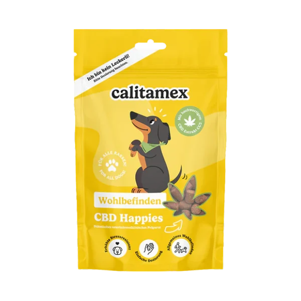Calitamex CBD für Hunde: THC-freie Öle & Happies (Calming, Mobility, Well-being) mit österreichischem Hanf-Extrakt. Natürlich, vet-entwickelt, Sonderlizenz – gegen Stress, für Gelenke & allgemeines Wohlbefinden. 100% natürlich, ohne Zusatzstoffe – ideale CBD-Pflege für Hunde jeden Alters. Für entspannte Vierbeiner & glückliche Halter!