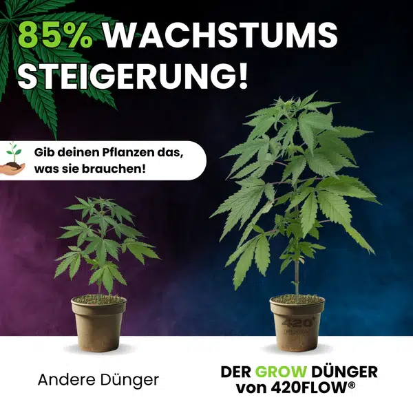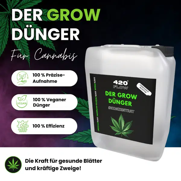 Der Grow Dünger von 420Flow® ist die gezielte Nährstofflösung für die entscheidende Wachstumsphase. Vom Keimling bis kurz vor der Blüte versorgt er Deine Pflanzen mit allem, was sie für kräftige Stiele, gesunde Blätter und eine stabile Struktur benötigen. Die ausgewogene, mineralische Formel schafft eine solide Basis für späteren Blütenerfolg und sorgt für gleichmäßiges, vitales Wachstum ohne unnötigen Stress.