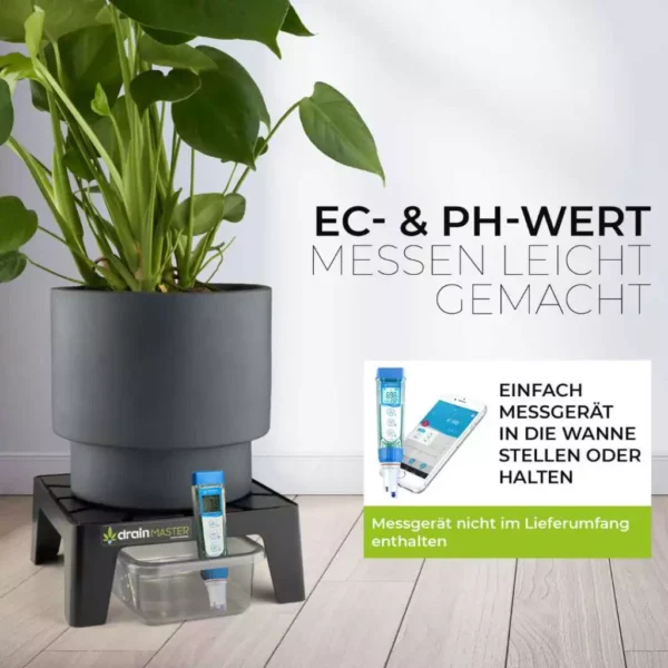 Verwöhne deine Pflanzen mit dem ultimativen Komfort des DrainMaster. Ob du ein Anfänger oder ein Profi bist, der DrainMaster Abtropfständer mit Auffangschale macht das EC Wert messen zum Kinderspiel. Nie mehr Unsicherheit, ob zu viel oder zu wenig gedüngt wird – dank der einfachen Prüfung des Nährstoffgehalts deiner Pflanzen. Drainage Wasser kann verdünnt und nochmal verwendet werden.