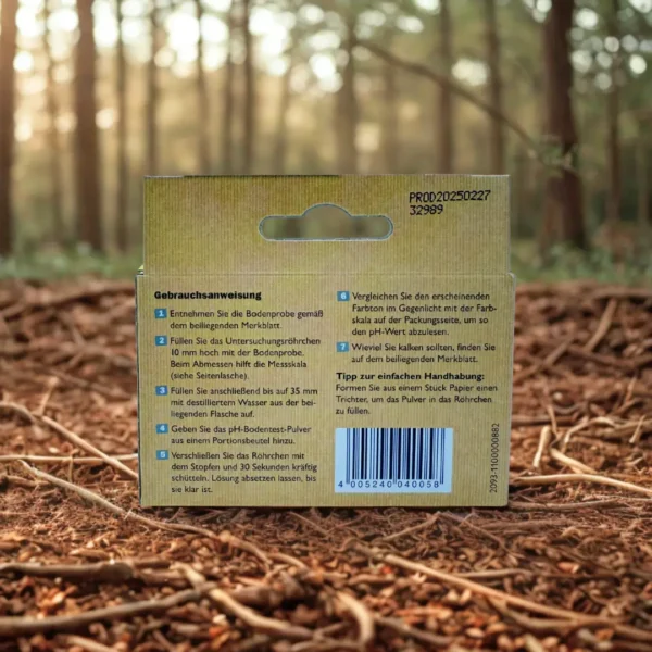 - Enthält: pH-Bodentest-Pulver, destilliertes Wasser, Untersuchungsröhrchen