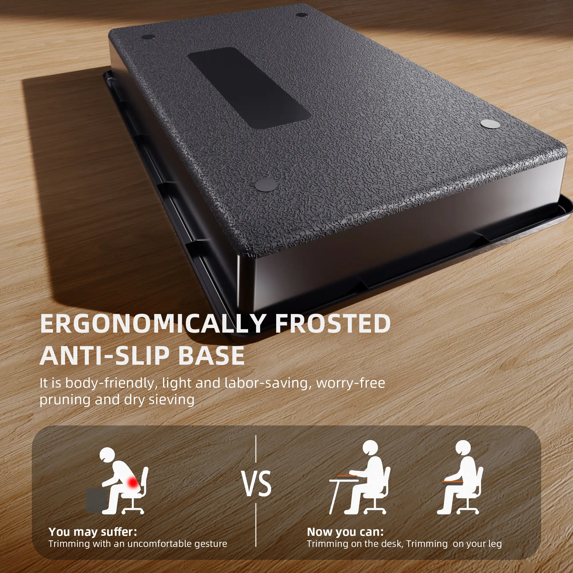 🪴 Großzügige Trimmfläche mit 150 Micron Edelstahl-Mesh