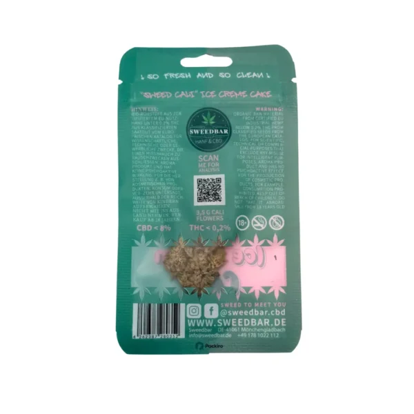 Sweedbar Ice Cream Cake Cali CBD Blüten sind dein cremig-süßes Highlight aus Kalifornien – mit 8,35 % CBD und nur 0,11 % THC für pure Entspannung ganz ohne Rausch. Diese handverlesenen, hell-harzig schimmernden Blüten auf Basis von Shantica 70 (inspiriert von Wedding Cake x Gelato #33) verwöhnen dich mit einem unwiderstehlichen Dessert-Aroma: sahnige Vanille trifft auf frische Erdbeere, einen Hauch Kuchenboden und eine sanfte, milde Süße. Du spürst sofort, wie sich dein Körper entspannt, dein Geist klar und ausgeglichen wird – ideal für entspannte Tage, kreative Pausen oder gemütliche Abende. 100 % EU-konform, pestizidfrei und schonend getrocknet, bringen diese Cali-CBD-Blüten kalifornische Leichtigkeit und höchste Qualität direkt zu dir. Wenn du aromatische CBD-Blüten suchst, die wie ein Eis in der Sommersonne schmecken und dich sanft runterbringen, sind Sweedbar Ice Cream Cake Cali CBD Blüten genau das Richtige für dich.